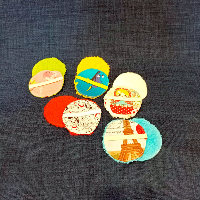 Discos desmaquillantes hechos a mano con tela y toalla 100% algodón